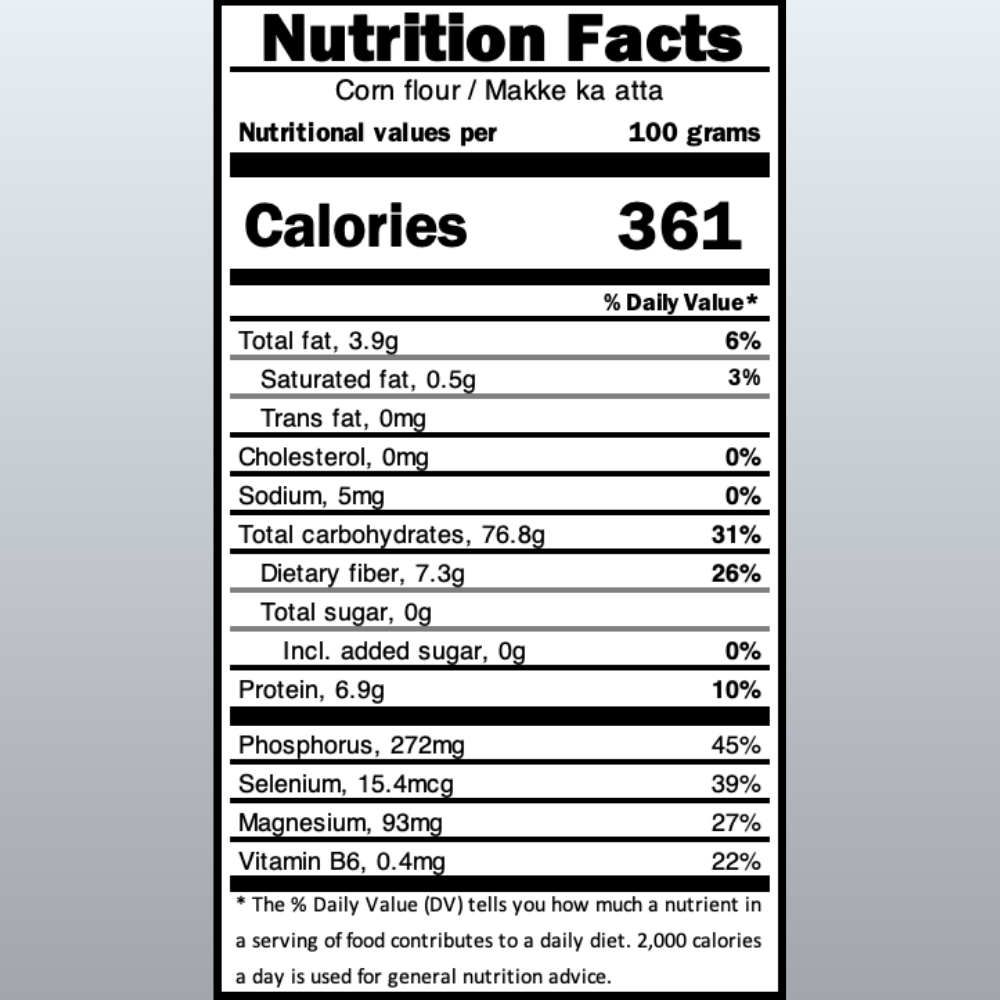 Makka Atta is traditionally combined with a bit of warm water and ghee to make soft, wholesome rotlas, often paired with seasonal vegetables or dals for a complete and nourishing meal.