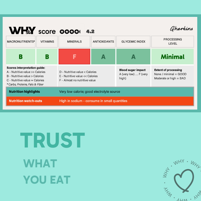 Small cucumbers, pickled in brine or vinegar with salt. Commonly used in salads, sandwiches, mezze platters, and as condiments.