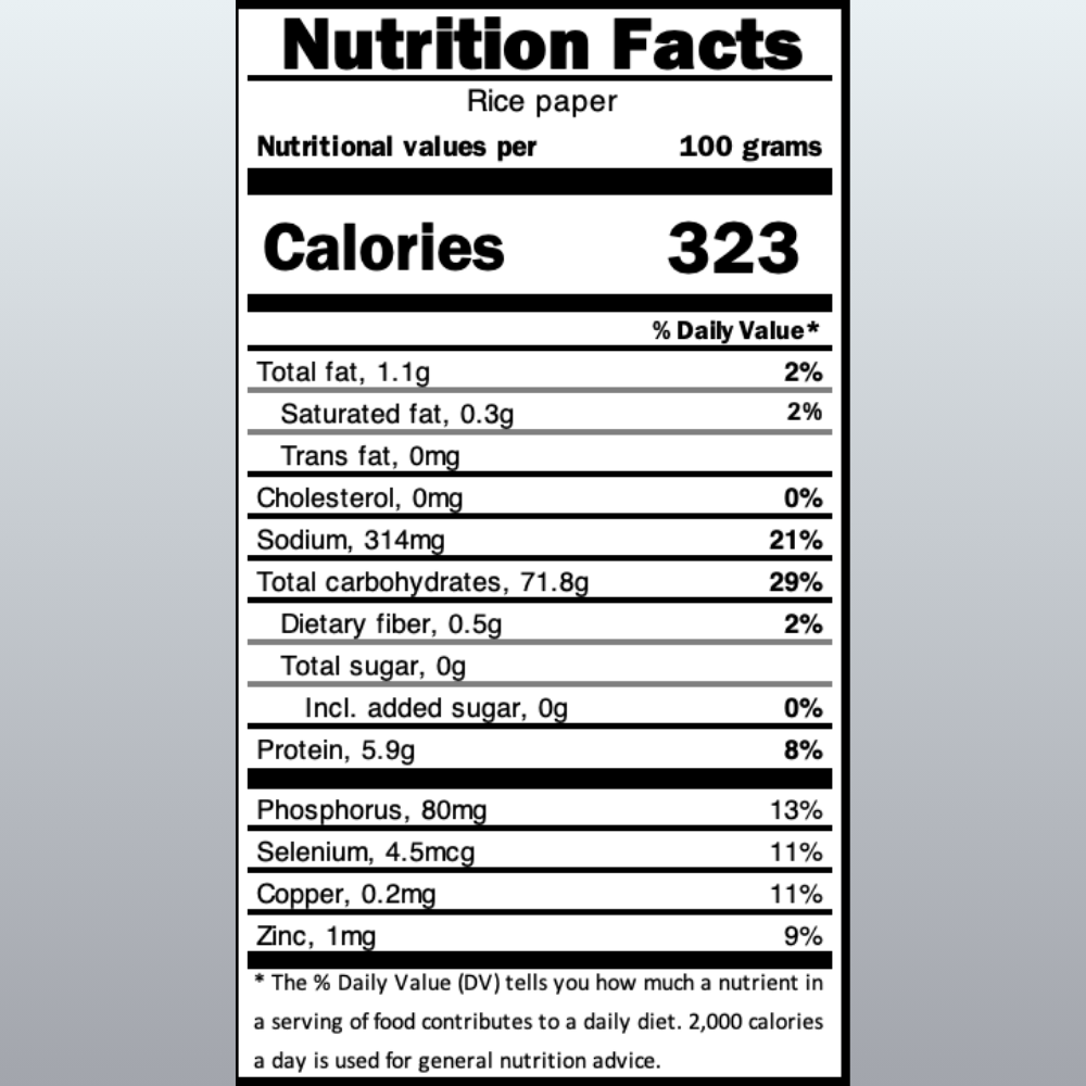 Light, delicate, and versatile, rice paper sheets are the perfect wrap for fresh spring rolls, summer rolls, and creative appetizers. Made from rice and water, these thin, translucent sheets soften quickly when dipped in warm water, becoming pliable and ready to roll with your favorite fillings. Naturally gluten-free, low in fat, and easy to use, they offer a wholesome and authentic base for both traditional Vietnamese dishes and modern fusion recipes.