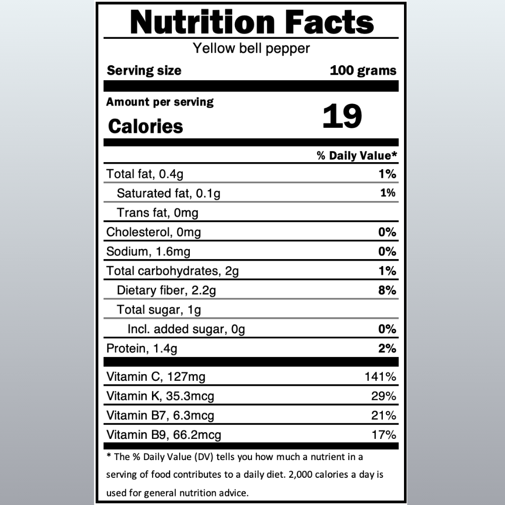 Sourced from trusted hydroponic farms, our yellow bell peppers are guaranteed residue-free and delivered to you ultra-fresh.
